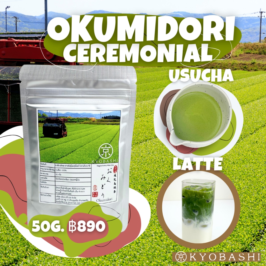 มัทฉะโอกุมิโดริ Okumidori เกรดพิธีการ Ceremonial Grade สายพันธุ์เดี่ยวจากเกียวโต รสอูมามิชัด กลิ่นดอกไม้ ถั่วเขียว ทะเล เหมาะสำหรับ Usucha และ Premium Matcha Latte